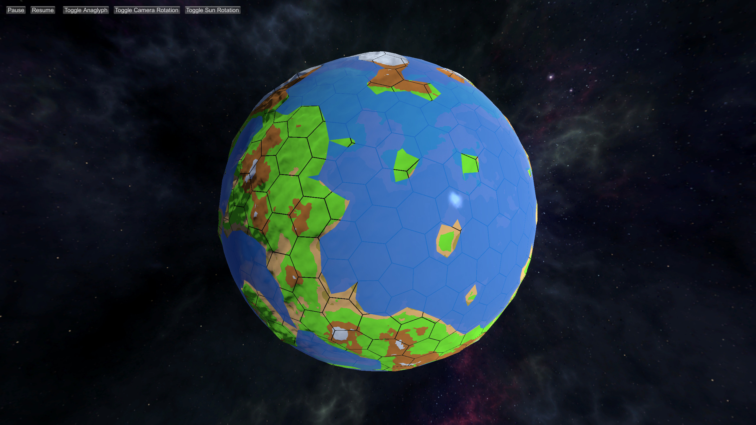 This is a trial piece of procedural generation. A shaded virtual globe will be generated based on steps of primitive but dynamic mesh operation and a height map based on fractal noise.